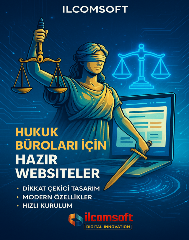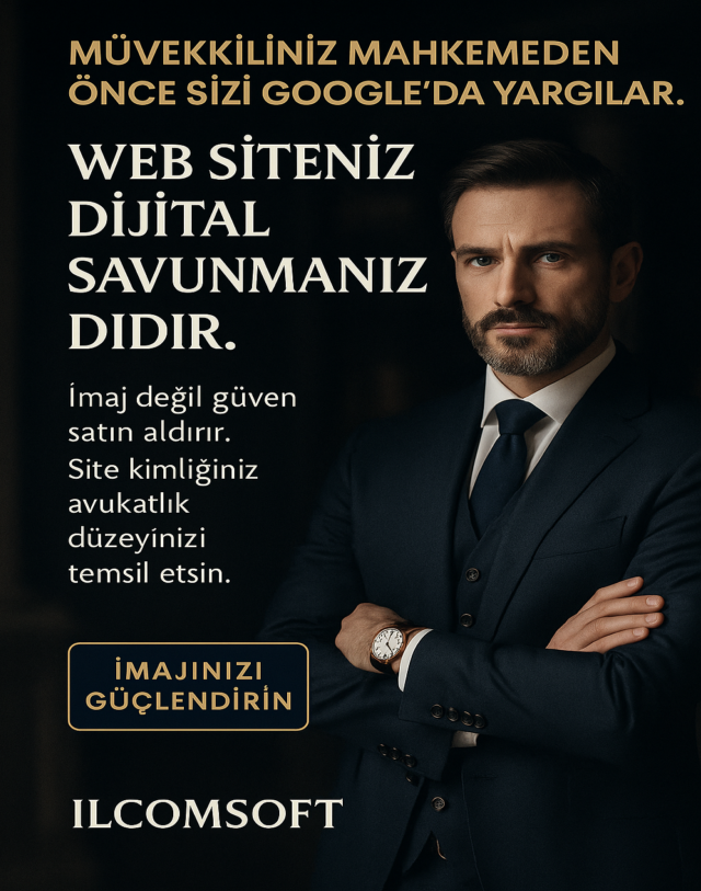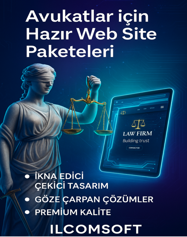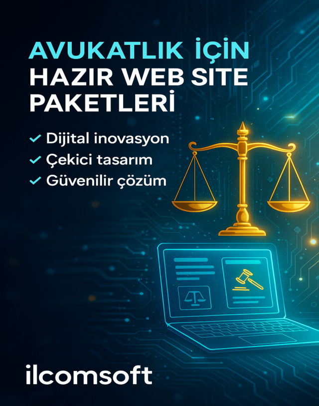Avukat & Hukuk web sitesi tasarımı, müvekkillerinize güven veren ilk dijital temas noktasıdır. ilcomsoft; profesyonel arayüz, hızlı erişim ve SEO uyumlu altyapısıyla hukuk bürolarına prestij kazandırır. İletişim formları, online danışmanlık modülleri ve mobil uyumlu yapı, müvekkil kazanımını kolaylaştırır.