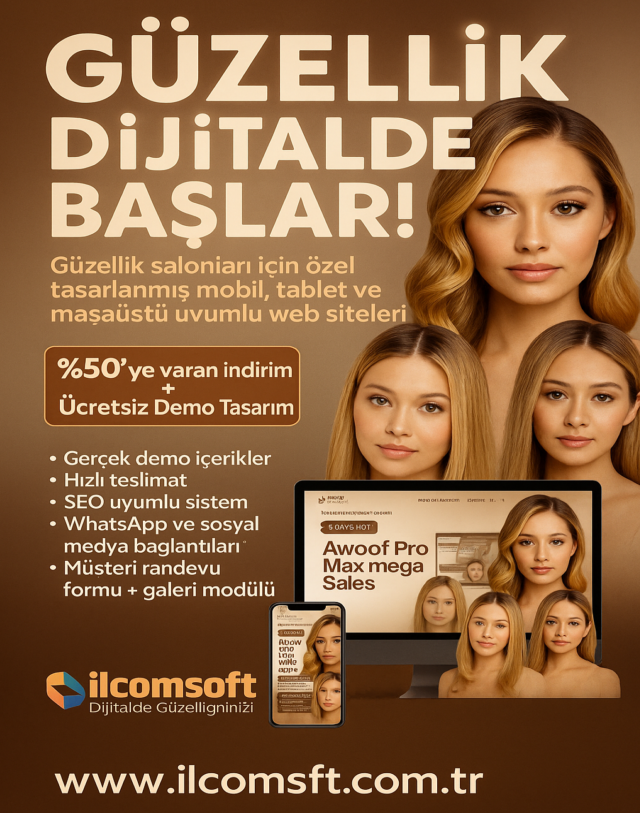ilcomsoft, kuaförler için modern ve mobil uyumlu siteler geliştirir. Örneğin SEO destekli içerikler ve hızlı açılan sayfalar sayesinde Google’da daha görünür olursunuz. Ancak en önemlisi, müşterileriniz sitenize güven duyar.